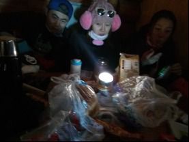 在饭店,我第一次看到了我这次旅程的同伴们,我最爱最爱的来自大理的“小疯子”姐姐,我滴“舅舅”,来自南京的“理想”叔叔。来自上海的两个老漂亮的阿姨,其中一个阿姨家有个弟弟据说和我长的一模一样哈哈。还有全程为我们拍照的摄像师赵叔叔和摄影师叔叔。还有非常重要的领队“姐夫小李子”和来自厦门的最最好玩的“神秘叔叔”那天晚上没有出现。最后登场滴就是金子叔叔啦,威武雄壮撒