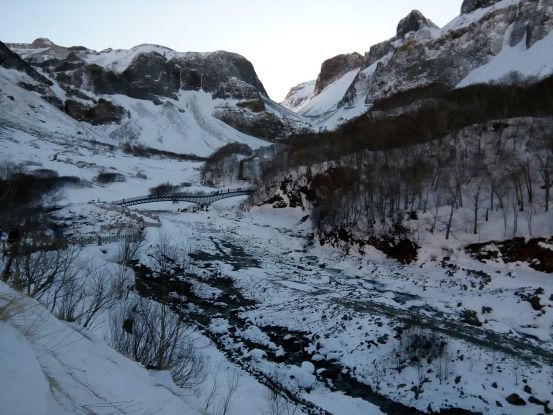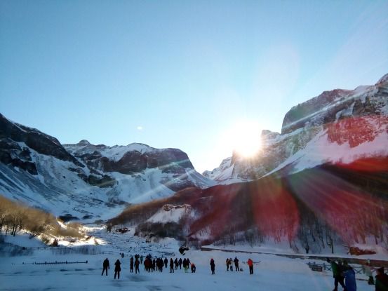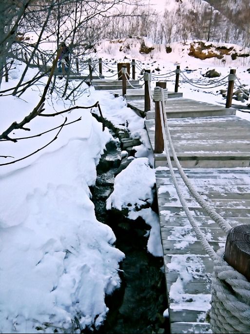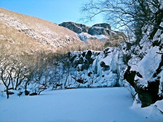早上出发以后2个小时后到了境泊湖,冰冻的瀑布,安静的湖边公园,许多神秘的小脚印,很有世外桃源的感觉。来的不巧,最有名的冬季跳水没有看到。午饭农家土炕热乎乎的绝对烫屁股哦