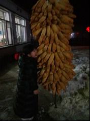 晚上入住的雾凇岛的这家客栈,面积真的是大,一进门就有一个超过30米的大炕,这还不是他家最大的炕,据说最大一个可以睡50人。这个客栈面积估计有4-5个足球场那么大,东北人民果然家大业大啊。请一定忽略我的小屁屁,麻麻太没有摄影角度观念了,差评,我还是更喜欢姐姐,在客栈门口果果我顺便试试了我的牙,果然不行,连玉米也咬不动。