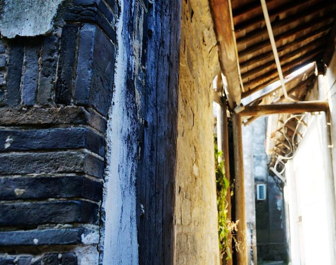 过了沈宅,有一处残存的明代粮仓,白墙剥落,露出里面齐整整码起墙体的小青砖,拿手去触碰,一股历史的冰凉与潮湿,瞬间侵入肌肤。