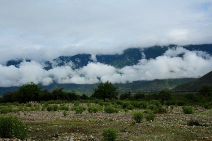 在布达拉宫、大昭寺,导游阿旺讲解得口沫四溅,面对磕着长头的虔诚百姓,我依然一片茫然。只有当我们一行人行驶在去林芝的路上,徜徉在雅鲁藏布江支流尼洋河边时,半山腰慵懒的云朵唤醒了我。我突然发现,西藏和内地是多么的不同!