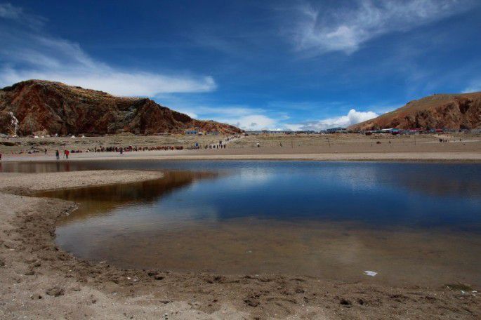 在我的眼中,纳木错是一个雄性的湖。狭长的沙滩,我原以为洁白柔软,没想到当我跪下时皮肤被咯得生疼,就像扎上了长满面颊的络腮胡。纳木错的水缓缓而清澈,水草浮动,但尝一口却是咸的:就像男人身上淌下的汗珠。他胸膛宽阔,热情洋溢、阳刚气十足。