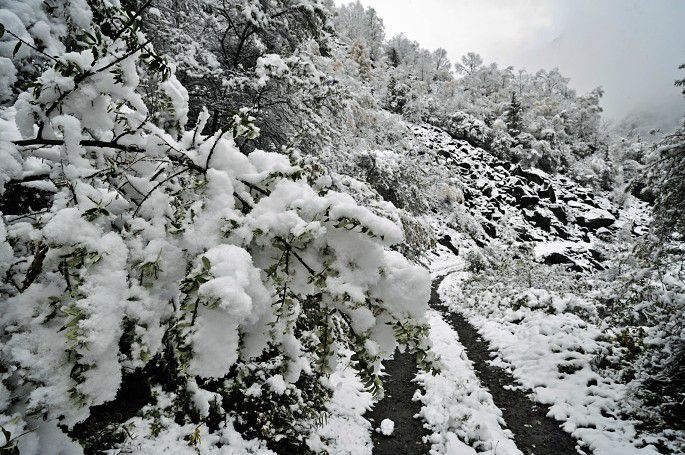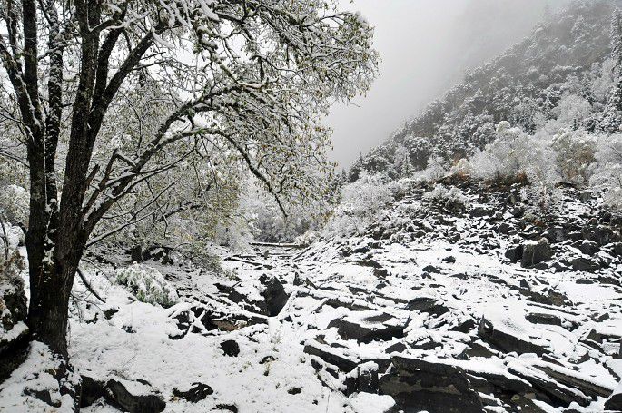 景区海拔高度2200~2900米,年平均气温6度(一月份平均气温2.8度-8度,冬季平均气温6度),所以冬季的松坪沟特别冷,在去之前我就做好了充分的准备,从上倒下有遮雪花的帽子,害怕发生雪盲的墨镜,避免耳朵冻着的耳罩,上身穿着保暖衣和毛衣,还有羽绒服,手上戴着防水的手套。下身穿着有绒毛的牛仔裤。脚上穿着登山鞋,不要以为我穿的这些很复杂,但是我告诉你哦,这些全部都是用的着的。包包里面戴着预防感冒的感冒药、外伤药,备用的毛袜,还有热水。