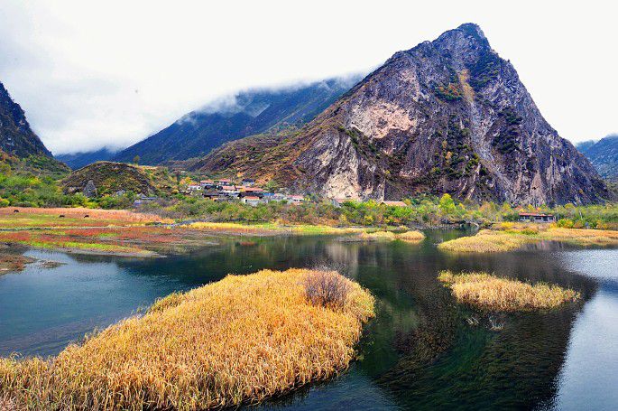 一眼望去,只见草色、水色、山色、云升雾起,有野鸭和水鸟嬉戏其间,附近的羌族炊烟袅袅,整个海子已给这片田园风光绘出绝美的诗情画意。