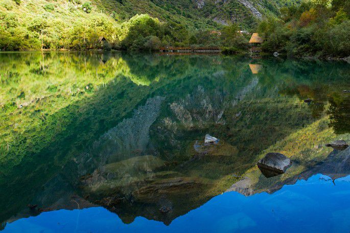 上下白腊海因位于白蜡寨上方、下方而得名,上白腊海长900余米,宽250米,面积101亩,下白腊海海拔2430米,海面127亩,蓄水95万立方米。各有各的不同,各有各的魅力,因为水域位于狭窄的高山之间,峰峦回映,总让人分不清哪是山,哪是天,哪是水,就像置身在童话世界里一样,这里也是以前当地羌民的养鱼场,他们在这养的是高山冷水鱼,以为无甲又称高山裸漓鱼,他们生长速度极慢,一年大约也就只长两寸。