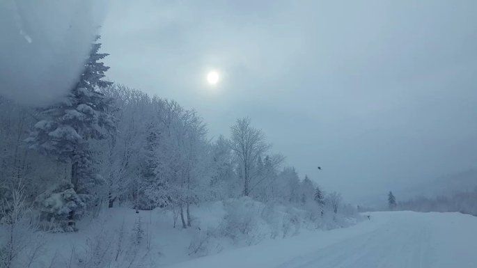 开了五个多小时,到达雪乡和雪谷的交叉路口。从这里出发,到雪乡和雪谷差不多都需要一个多小时。