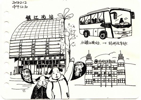 此次扬州之旅的主角依旧是两只小狗,一个画画一个拍照,记录沿途的美景与有趣的事。