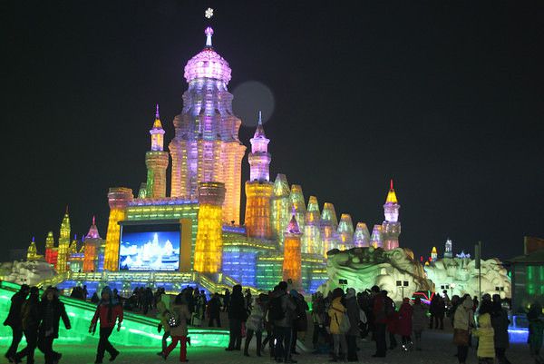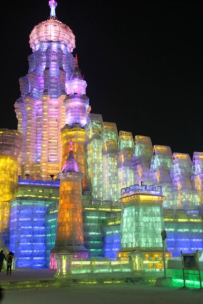 傍晚六点以后,灯基本全都亮起来啦~置身五彩绚丽的“冰城”的世界里,感觉非常棒!