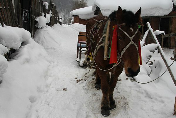 雪乡的雪比东升的还要厚,但可惜的是,我们依然没有看到雪蘑菇。领队说,也许是因为这几天气温比较高,雪都化开了的缘故。