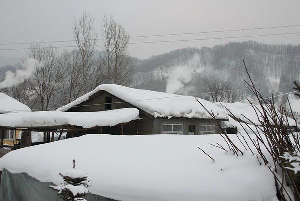 之前在东升,我们睡在房东家的炕上,明显感觉到室内外温度的差异。到了雪乡,这种差异就更加突出了,房东家的屋子又热又闷,穿着最单薄的打底衣裤却仍然汗流浃背,男筒子们都恨不得要光膀子。没办法,尽管下午已经把整个雪乡逛的差不多了,但屋里实在太热,坐不住,只能穿戴好衣帽再次出门去。大伙儿调侃说,出去乘乘凉!哈哈