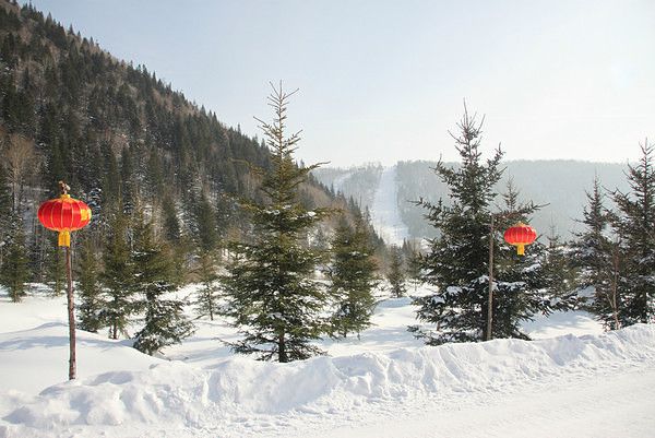 大汗淋漓的在雪乡半梦半醒睡了一夜之后,我们的行程也到了最后一天了。最后一天是安排去亚布力滑雪。领队蚂蚁带我们去了亚布力最好的一家滑雪场,全国大学生运动会的滑雪滑板项目的比赛都是在那儿举行的。蚂蚁在去的路上跟我们说了一些滑雪的注意事项,并且建议我们第一次滑雪的最好都请个私人教练,虽然价格有点贵(200元每人),但是为了安全起见请个教练还是有必要的。蚂蚁说的时候我们还不太相信,虽然请了教练但心里还是半信半疑,但是后来听说真的有人没请教练以为只要向下猛冲就可以,结果摔得很惨,磕了牙齿鼻子流血,我们才相信蚂蚁的话!咱们的领队真是太有先见之明了!