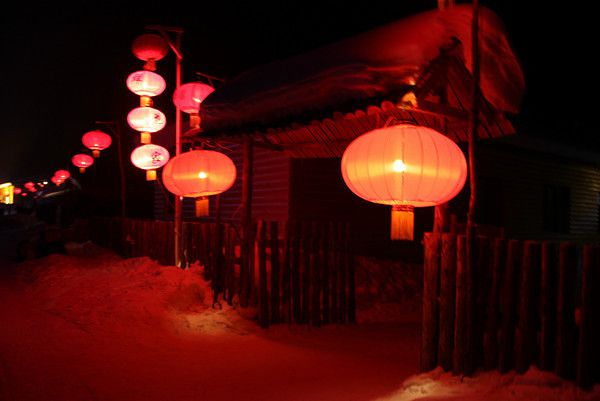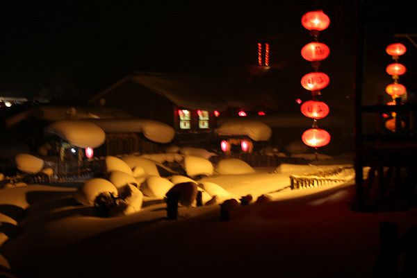 夜晚的雪乡,虽然没有大理丽江的喧嚣繁华纸醉金迷,却有别样的情趣。