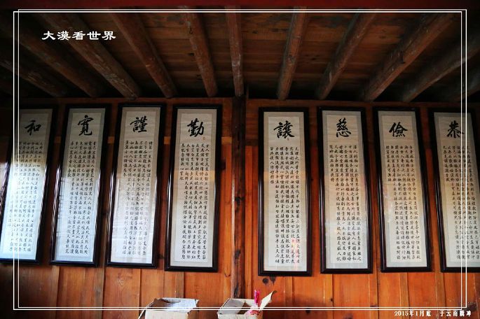 客栈名为“鉴和”,老板姓寸(13887813263),在带我们进古镇的路上,就很自豪地指着路边的建筑告诉我们,这是他们家族的祠堂,让我们有空一定要去看看。后来,寸老板还跟我们讲了很多家族祠堂的故事,我们才知道,原来和顺有八大姓八个大家族,寸是其中之一。寸、刘、李、尹、贾、张、钏、杨,这八大家族都有自己的宗祠,每个宗祠都是建在村里最好的位置上,当然建筑也是各有特色。在和顺的五天里,自己依次走了其中6个。