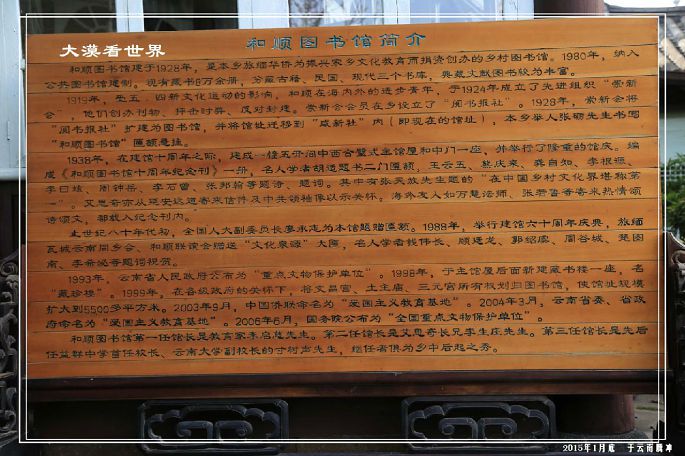 自己在这里留恋忘返,整整呆了一个下午。虽然从藏书量与规模上看,这个图书馆很小,但把它放在曾被人谈之色变的蛮荒之地的祖国西南前哨的“极边第一城”的位置上,放在曾是穷乡僻壤的农村环境里,放在侨乡的氛围里,放在始于20世纪二十年代的起点上,放在历史风云变幻的进程中考察,的确是有着深厚内涵的和顺的重要文化符号,安静坐在这里看看古旧的书籍,会有一种很恍惚的穿越之感。