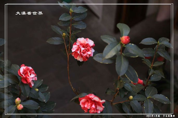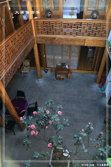 这家客栈总是夜不闭户,厨房也对我们全开放着,期间用了厨房的米面油菜,主人也从不跟我们计较费用。天井里有株茶花,很美,据说已经有几十年历史。