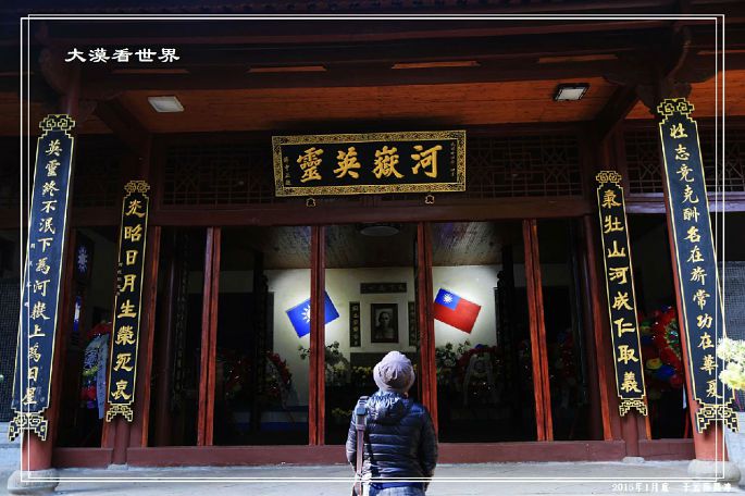 庄严肃穆的忠烈祠。忠烈祠上檐下悬蒋中正题“河岳英灵”匾额;祠堂正门上悬国民党元老、大书法家于右任手书的“忠烈祠”匾额。