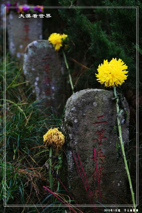 墓园里安静肃穆,茶花盛放,仿佛是为抚慰英灵的魂魄: