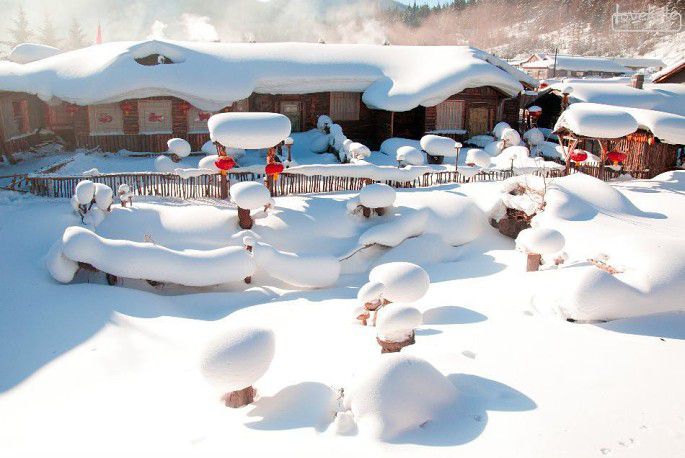雪乡位于黑龙江省牡丹江市辖下海林市(长汀镇)大海林林业局双峰林场,距长汀镇7.9公里,占地面积500公顷,整个地区海拔均在1200米以上。2013湖南卫视大型亲子秀《爸爸去哪儿》最后一站的拍摄地。由著名导演徐克执导的2014年圣诞贺岁影片《智取威虎山》外景拍摄地。此外雪乡影视城的土匪窝,跑马场,木屋,栈桥,吊楼,地窨子,白桦林形成了一道原始的人文风情,再现了东北剿匪时期的林海雪原。羊草山上的日出更是一种神奇的梦幻世界。白雪,红日,雪松,祥云完美的结合在一起构成了一幅美丽圣洁的图画。