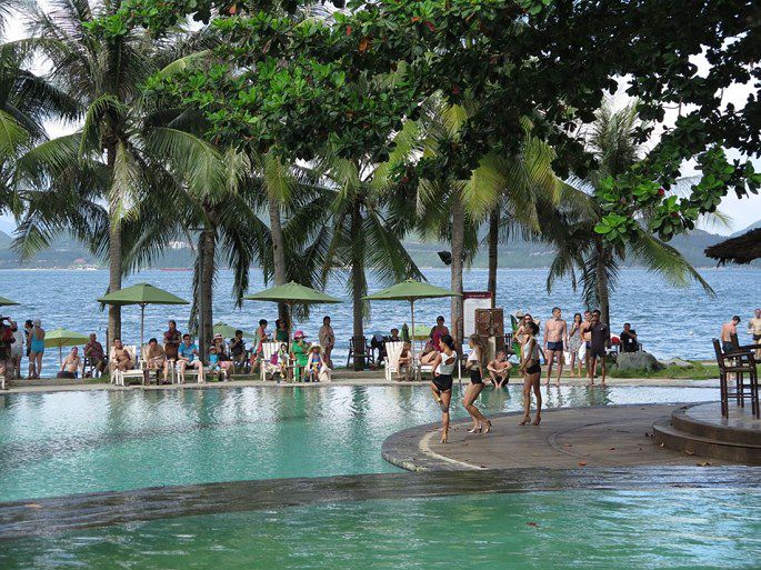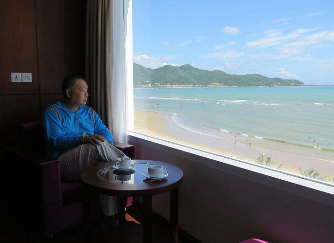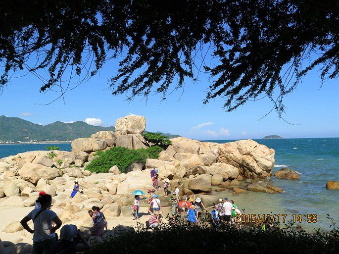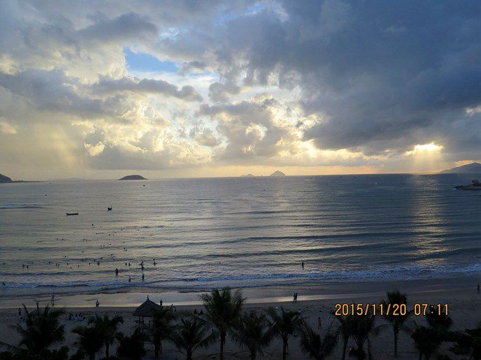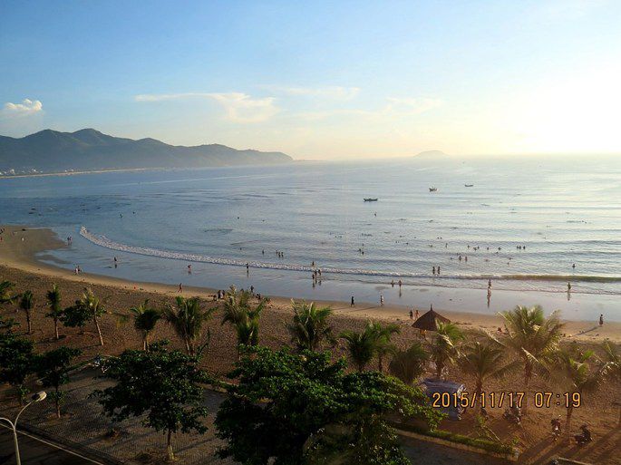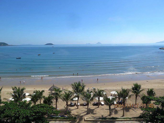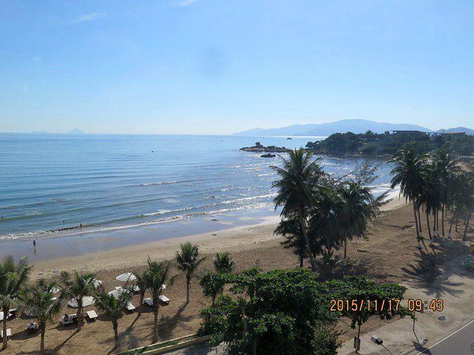 2015.11.17,凌晨越南时间0:30(晚中国1小时)左右,飞机到达芽庄机场,过海关时,机场海关收护照和签证单及2张大2寸大头照片。出关后,当地中文导游带队乘大巴驶入市区,安排入住紧邻海岸的三星酒店<静海酒店>。本人入住704房,房间正对大海,窗子由整块大玻璃构成,拉开窗帘,美丽海湾全景呈现。下午1点半大巴接至午餐,先后游览<五指岩>,品咖啡,游览位于芽庄河北岸的〈婆那加占婆塔 〉,建于公元7-12世纪间的占婆遗址,是印度教的建筑。原本应有10个塔,至今仅存4座塔庙。这里供奉的是天依女神(PoNagar),天依女神是庇佑占婆王国南部的一位女神,保护着靠海吃饭的渔民,相当于中国渔民心目中的妈祖。不过据说早在公元前二世纪,印度教就在这里供奉印度教希瓦神(Siva)了。现在来这里参拜的,不仅有越南人,也有当地的很多华人。然后参加【THAP BA矿泥浴】,该地富含有大量矿物质元素,矿泥浴对清洁皮肤具有功效 。