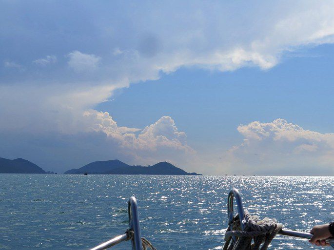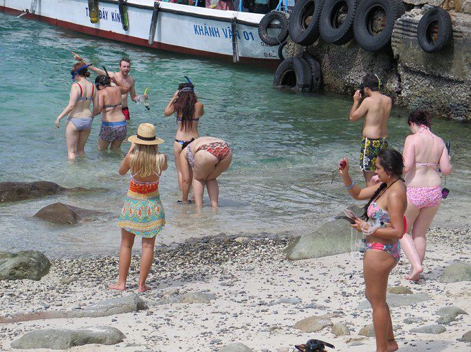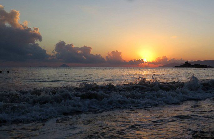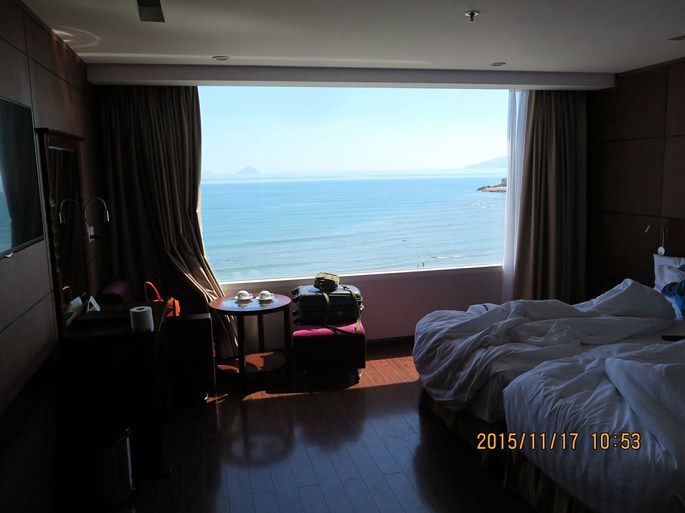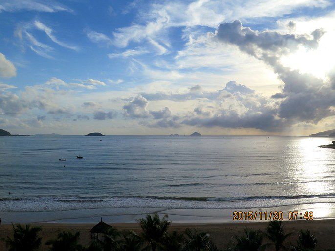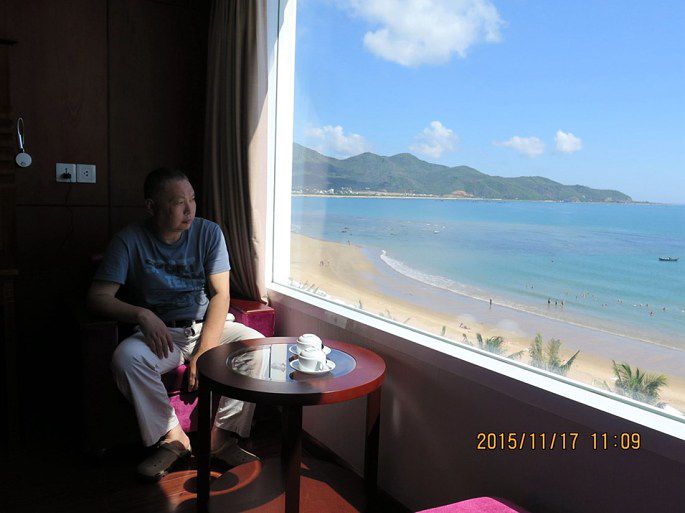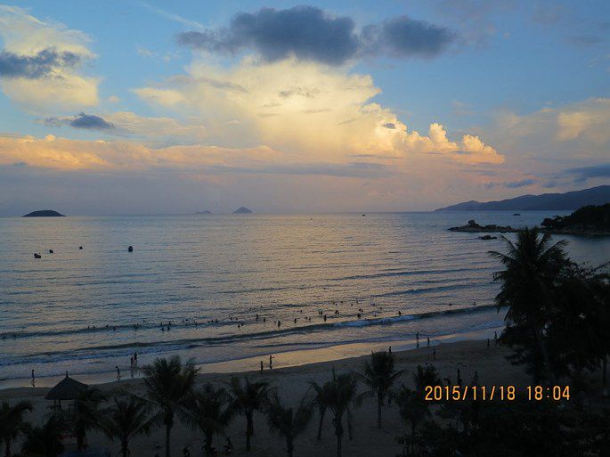 2015.11.18,酒店前的大海,伴着日出日落和潮长潮落,天天呈现不同的美丽景致,令人留连。酒店的早餐丰盛可口。大巴将我们载至码头,在导游的带领下乘快艇开始了一天的〈出海一日游〉 。黑岛(Mun岛)的海水清澈透明, 可潜水或玻璃船看海洋生物,接下来到竹岛, 中午在竹岛享用正宗越南风味海鲜餐。后登上蚕岛,岛上有各种水上娱乐活动。晚上在酒店附近的海鲜店品尝新鲜的大龙虾等美味。