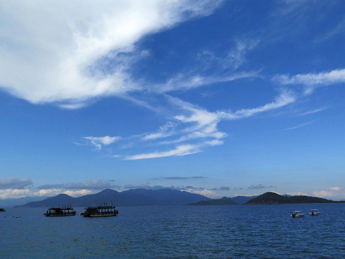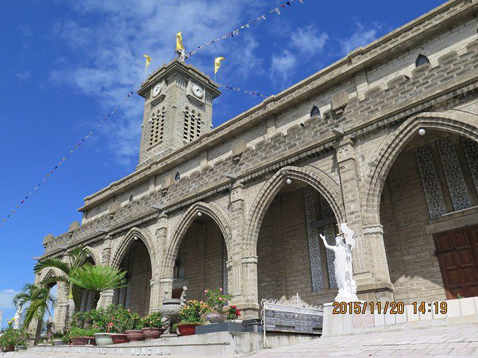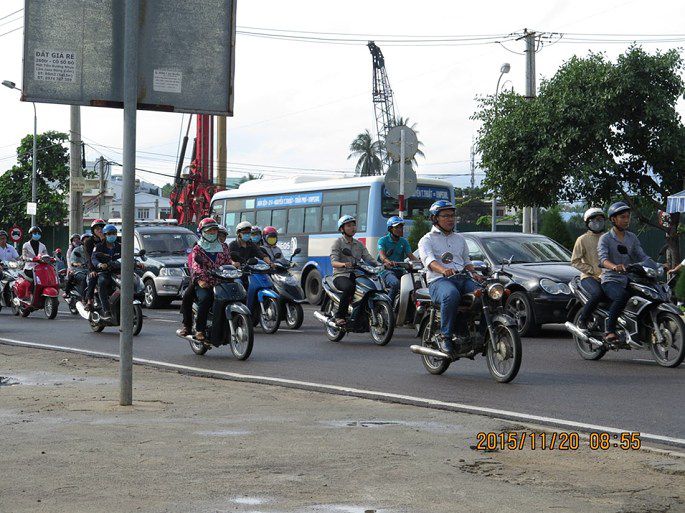 2015.11.20,越南是摩托王国,大街小巷都飞驰着各形摩托,以弯梁和踏板为主,虽然是繁华的海滨城市,因摩托多于汽车的交通格局,很难发生城市交通捅堵的问题。越南摩托看上去都较新和干净,驾乘人员都戴头盔,基本不安装尾箱,夜间行车都开车灯,一般车道都与汽车混合行驶,相让相行。中午11点退房,行李寄放总台。午餐后,参观龙山寺,龙山寺建于1889年, 寺后的山上有一座白色大佛,目光向下俯视,好像是在守护整个城市一般,从山上往下看芽庄市景。参观【芽庄大教堂】,整座教堂外型由石头雕刻而成所以又称石头大教堂。后被安排参观芽庄乳胶店。然后自由活动,逛街购物,晚上9点半大巴到酒店接至机场,导游分发护照,凭护照领取登机票,过安检海关,于次日凌晨1点半(越南时间)乘川航班机回国。