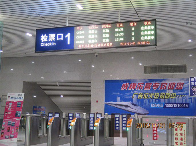 2015.11.21,凌晨5点半航班到达双流机场T1,出机舱和过海关等候了较多时间。步行至双流机场动车站,乘8:31分动车回江油。