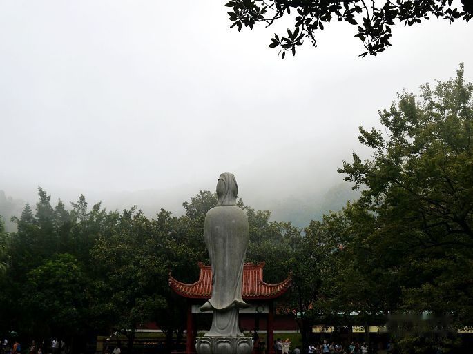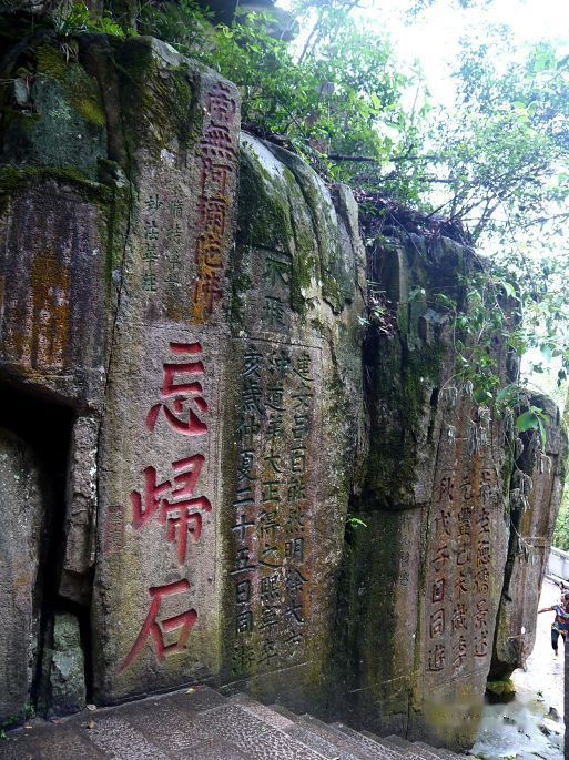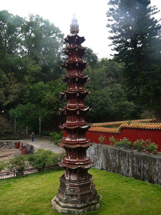 离岛登岸,乘动车之福州,至已黄昏。趁夜走三坊七巷,唯南后街人头济济,东西横巷关门闭户,阒静无声,颇乏兴味耳。翌日晨,发东郊之鼓山,天濛细雨,时密时疏。及至山下,余尚仰读山坊之柱联,而李君已购好往返之缆车票筹矣,其人娇贵,全不想为登山费力。曩时以为榕之鼓山亦如长沙之岳麓、贵阳之黔灵乃是城市山林,登攀轻松可至,入林方识此山方圆阔大,主峰高耸,非城内之“三山”(乌、于、屏)可比。坐悬椅之上,依铁索而行,秉气御风,穿云荡雾,掠松梢而过,揖顽石而行,亦别具游趣。于半山得见一对白雉,觅食林间,人过其上而不惊,咸以为吉。索道由下院而至十八景,凡一千余米,其后由蹬道入涌泉寺。古刹初兴于唐建中四年(七八三年),后于武宗灭佛之时被毁,五代后梁开平二年(九〇八年)闽王王审知延请国师神晏和尚主持重修伽蓝,即于今址,历今亦千两百年矣。所谓“进山不见寺,进寺不见山”者,乃寺隐山腰深处,于山麓难望其迹;而寺内殿宇宏阔,进寺则只见神佛不见山林矣。入山门,则一甬道左折前引,两边佛塔俨然,过“回头是岸”坊,豁然见莲花池焉,池中立南海观音像一尊,池北有亭可遥拜。莲花池西首乃寺之中轴,依山势层级而上,曰天王殿、大雄殿、藏经阁,清康熙帝御书“涌泉寺”泥金寺匾悬天王殿寺门之上,而寺门之东西两侧一对九层千佛陶塔乃宋元丰五年(一〇八二年)所烧造,东曰“庄严劫千佛宝塔”,西名“贤劫千佛宝塔”,本塑龙瑞寺内,寺毁而迁此。大雄宝殿宏丽辉煌,主尊三世佛不着梵服,只披汉装,法相庄严慈爱。莲池东首由“灵源深处”门穿出而下,即灵源洞喝水岩焉。其说曰,神晏法师于岩下诵经,嫌洞内涧水喧哗,呵斥乃止,故以“喝水”名之。山壁岩间,历朝题刻累累,其所著者,灵源洞壁苔草之下,有朱晦翁巨幅榜书“寿”字;灵源东壁宋庆历六年(一〇四六年)“邵去华、苏才翁、郭世济、蔡君谟庆历丙孟秋八日游灵源洞”题名,为鼓山题刻之最初者;施元长题“喝水岩”,蔡襄题“忘归石”,诸般种种,可上追浯溪而继武书坛矣,称摩崖书刻之殿军可也。惜字迹皆以红蓝色漆填描,显则显矣,然古意顿失,风神不再也。