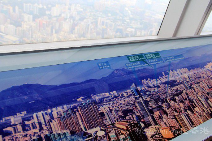 落地玻璃窗的设计蛮有时尚感,每个方位都设有一个供游客对照的示例图,香港所有知名的高楼大厦都可以一览无遗,好比如一个立体的香港导航图,有用系数五颗星!