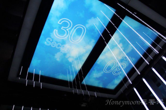 必须要提一下天际100的高速电梯,短短1分钟的时间就到达了100楼的高度!电梯很平稳,还伴有相应的语音播报,只不过我在电梯里面全程都是张着嘴巴的状态,原因我就不说了,老公还把我当时的囧态给拍了下来,叫我情何以堪~~