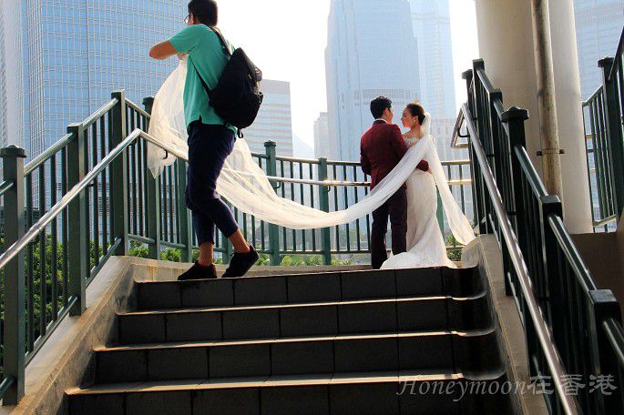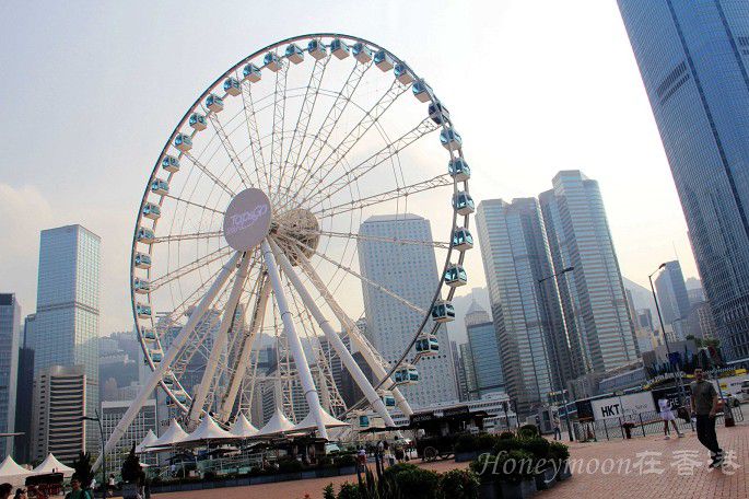 入秋后的香港是个适合恋爱的城市,到处可见幸福洋溢的瞬间。中环码头的摩天轮梦幻无比,我们在摩天轮附近刚好遇见一对新人在拍婚纱照,在这么美丽的维港旁拍摄婚纱照该是一件多么奇妙的事情!好羡慕地说。