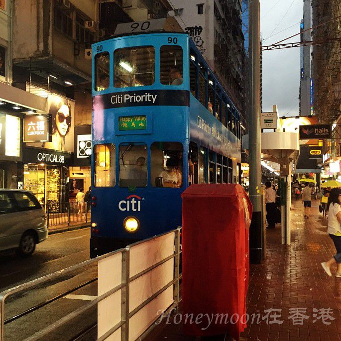 搭上复古味浓厚的叮叮车环游香港,夜雨中不失有一种穿越时光的味道,这时候来一首邓丽君的《香港之夜》就更配了。叮叮车可以说是到香港旅游必须要去体验的特色之一,其实就是我们平常所说的有轨电车啦!这种叮叮车只有香港岛才有的古老交通工具哦。