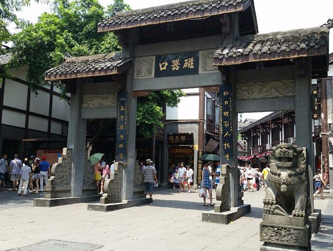 起早在小什字站做轨道交通一号线直接可以到达磁器口,一共15站。十点钟到达磁器口,在轻轨下车走过的第一个大门只是景区的入口,再走几百米才会进入景区。十点钟的磁器口人已经开始多了起来,界面很多小吃店,鸡杂最出名。也有很多老式的茶馆,可以喝茶看戏。