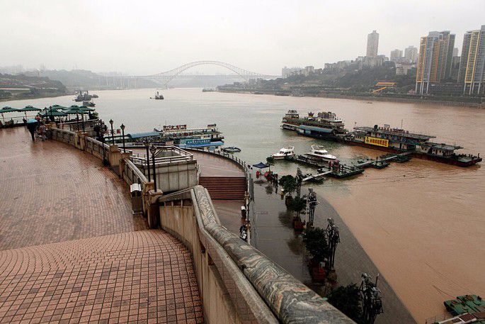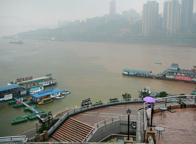 早起第一站就是朝天门码头,从宾馆出去走一会,做一站公交车就到了码头广场。天气不是特别的晴,仅仅能够隐约的看到长江和嘉陵江的分割线,码头边上还有很多晚上游船的项目,套餐有很多,但是有一些比较坑人,如果晚上坐船游夜景的话一定要选择好!