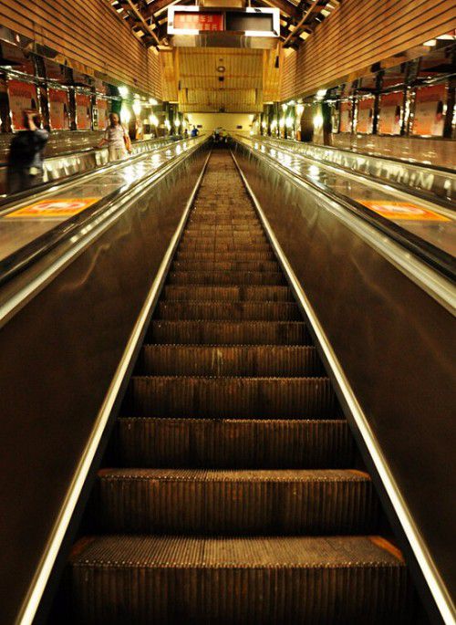 走完十八梯之后就动身前往两路口皇冠大扶梯。全程112米。说是亚洲第二长的扶梯。两边分别是菜园坝和两路口站。票价两块,可以使用交通卡。对于不恐高的我来说做这样的电梯很好玩。