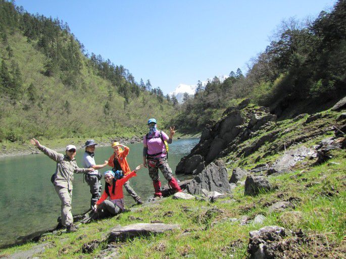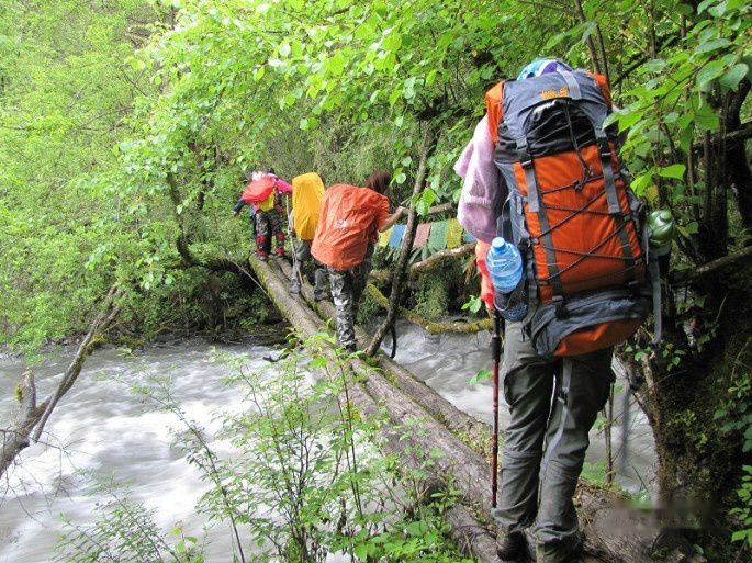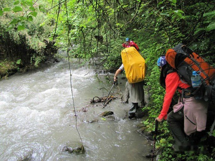 一路的水路,检验大家登山鞋的防水度。而我这个不知天高地厚的小驴子,出发前穿了一双凉鞋,在峰哥的劝说的下花21大洋买了双当地的胶鞋,顺便赞一下,胶鞋的实用性很强大。特别是在我们走错路的那段地方,没有封闭脚的话,不知道我还有没有继续行走的勇气。