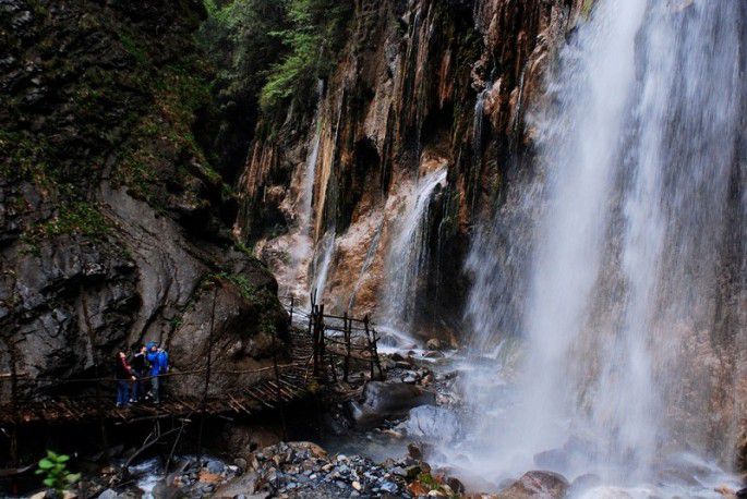 (虎牙简介,抄袭峰哥的)虎牙大峡谷在平武虎牙藏族乡境内距绵阳将近300公里,位于四川雪宝顶国家级自然保护区与黄龙风景区的背部,(插图 ,虎牙地图)它是一个正在开发的风景区,里面目前没有人家,以高山峡谷著称,有草地海子、瀑布、云海、雪山梁、多姿多彩的民族风情,有水晶矿、钨矿、云母矿、金矿等矿标本观看,主要景点有大龙口大瀑布,五柱堂大瀑布(高500米),开满鲜花的大草地,绿海子、花海子、唰唰水和花花水瀑布等很多奇特景观和风景,适合进行登山、探险、漂流、科考、攀岩、避暑等在群主峰哥的组织下,户外群三女两男虎牙之行确定。