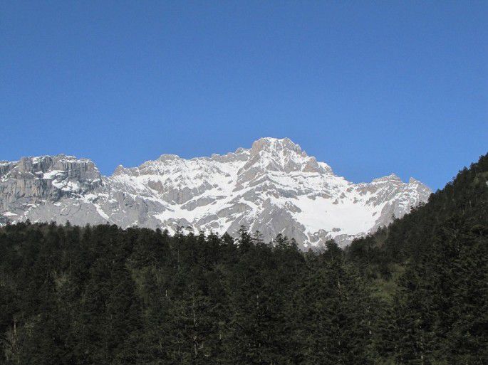 一波多折的虎牙之行终于结束,对于去绿海子的路:直行,到有经幡的路的时候向左过桥,然后向右顺河边走,翻过山,到达大草甸。到草甸后在草甸中间部分有几乎不是路的路,冲上去,翻下来,就是绿海子了。每个重要的地方,都有经幡或者玛尼堆提示