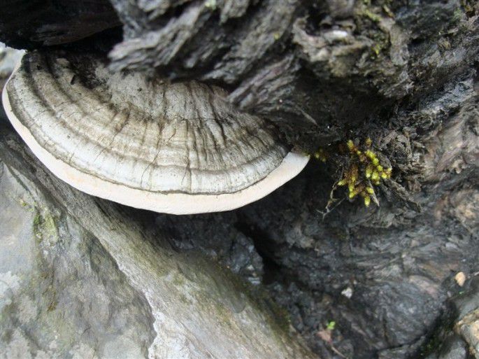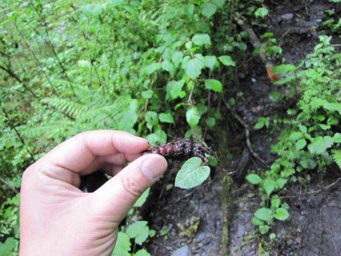 半腰的路很美,植物茂盛,很多我们不认识。特别是倒下的树干上长的“灵芝”,可乐哥命名它为“灵芝”,同时还命名了“蓝莲花”“紫玫瑰”等等