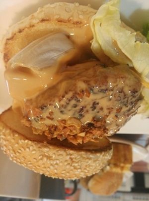 来之前我就在网上查找攻略,印象中最深的就是台北的【找餐。厅】,因为这个餐厅名字挺奇怪的,中间一个句号。在网上看的时候,我还以为作者打字时的失误呢。刚好这家餐厅离酒店不远,我点了一个花生酱猪肉排起司堡还有原味蛋饼。排队的人真不少,上班的时候我都是啃几片饼干当早餐的,但是在这排队,不仅肚子反应不小,看着别人的,嘴巴也在奢望快点轮到我。