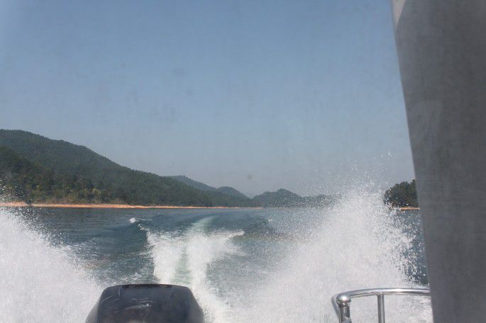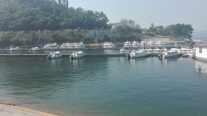 首先来到的是快艇码头,码头上停泊了整整齐齐的快艇,恭候着来自五湖四海的游客们,带着大家乘风破浪领域千岛湖之美,我们一行乘上快艇向着千岛湖深处驶去。
