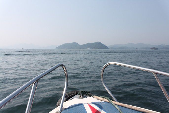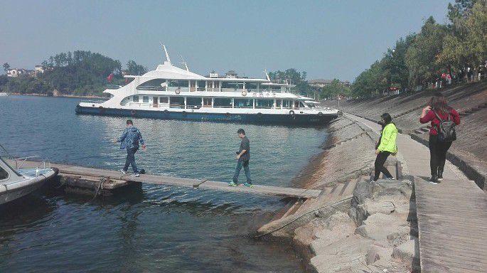 这是我第二次来到千岛湖,之前是乘坐的大型的班船有固定时间固定航线并且很慢的,这次乘坐的快艇,感觉就是一个字爽。如果乘坐的快艇是前后通风的那人就是这样紫的,你凌乱了没?