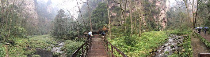 [袁家界]:是张家界森林公园山顶观景最为奇特壮观景区之一,与黄石寨遥遥相对却胜过它。其中最值得一看的是 “乾坤一柱”( 即《阿凡达》中的群山漂浮、星罗棋布的玄幻莫测世界--“哈利路亚山”)以及天下第一桥、连心桥。袁家界是旅行团聚焦地,我们去的时候见到的韩国游客比中国游客还多。