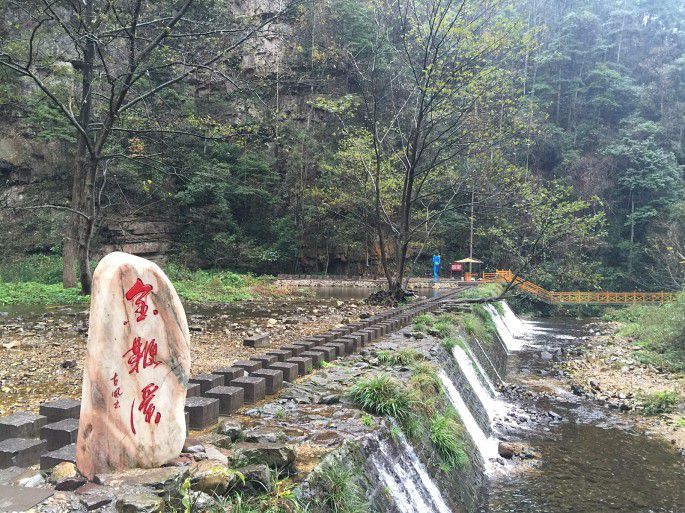 如果是夏季和不下雨的时候,金鞭溪或许值得一走,不过我是下雨天去的,穿了鞋套,鞋祙还是湿了,那个湿冷的感觉,令你根本没劲去欣赏景色了,只想着快点走出这个景点。走走停停拍拍吃吃,走完这个景点花了三个小时左右。一进景点的时候,我们觉得景色还是可以的,但走了三个小时感觉都是一样的景色,有点审美疲劳了,就觉得有点失望了,所以我建议去这个景点的话,还是得选个好天气。
