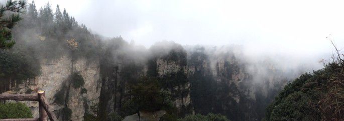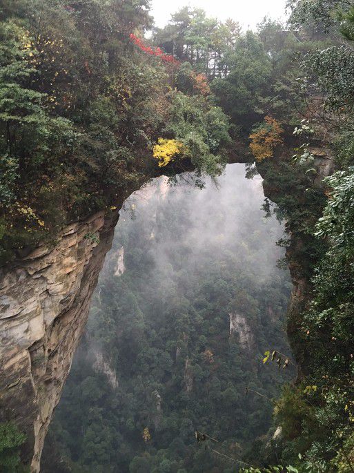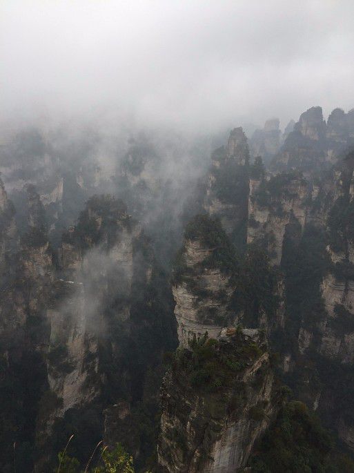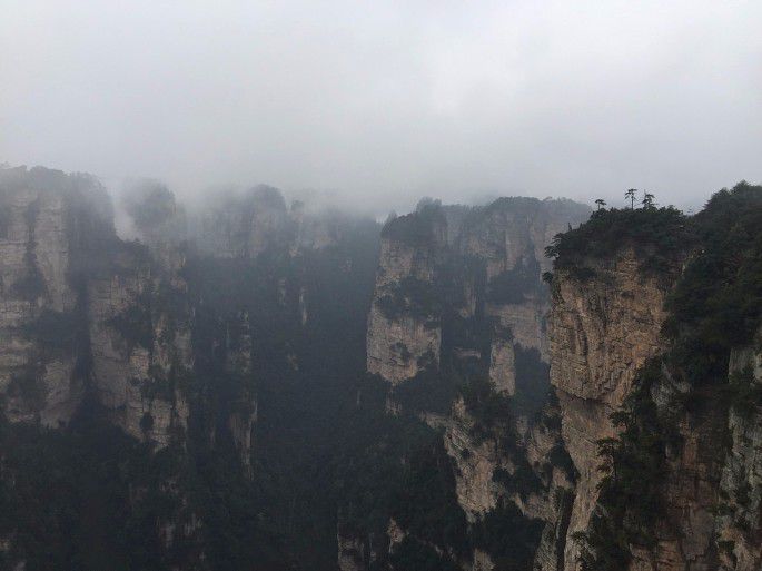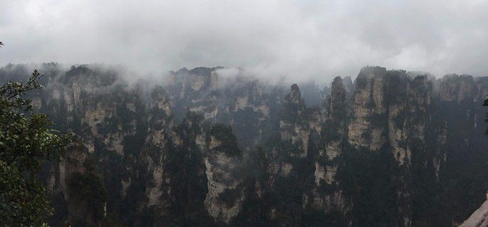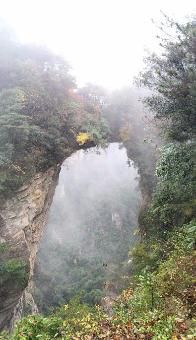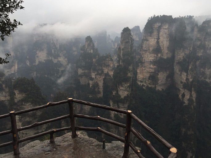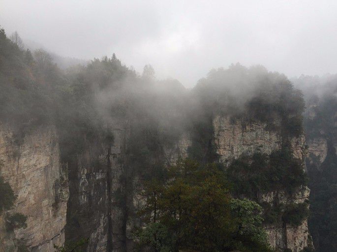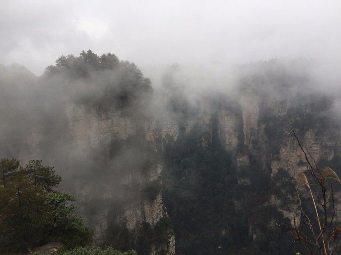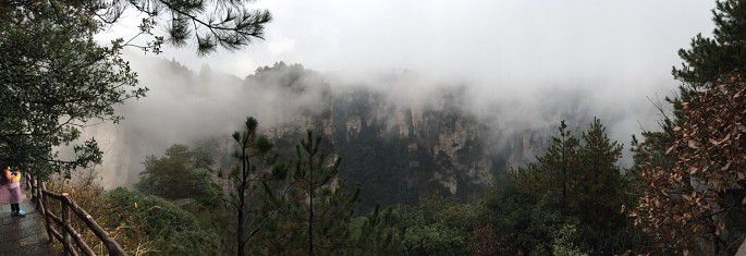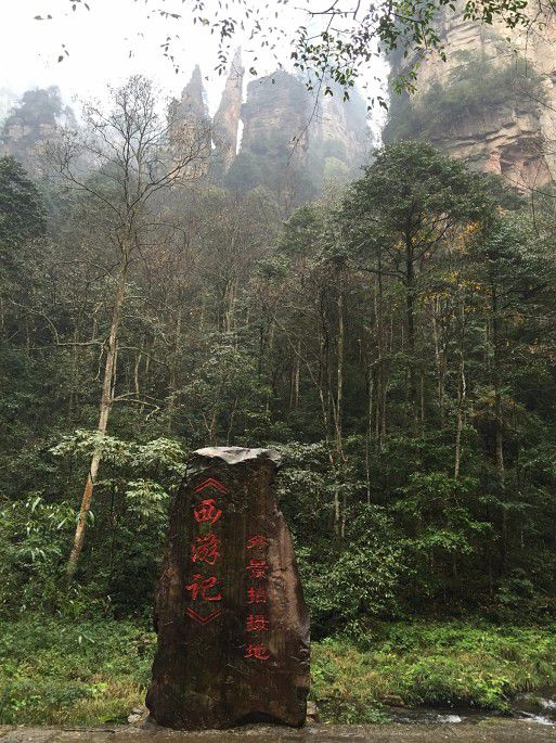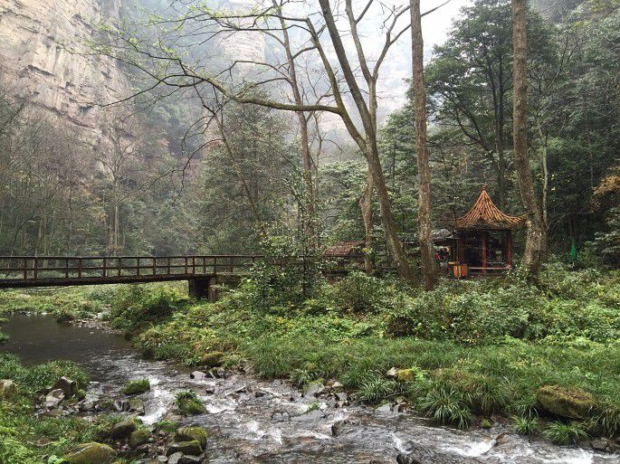 在泼墨山水画里,你从墨色深处被隐去,天青色等烟雨,而我在等你,炊烟袅袅升起,隔江千万里。在客栈巧遇几个台湾交换生,相约一起游杨家界,一路上欢声笑语,好有亲切感,在这看似凄寂的景色中,有你们的陪伴,显得格外欢乐!