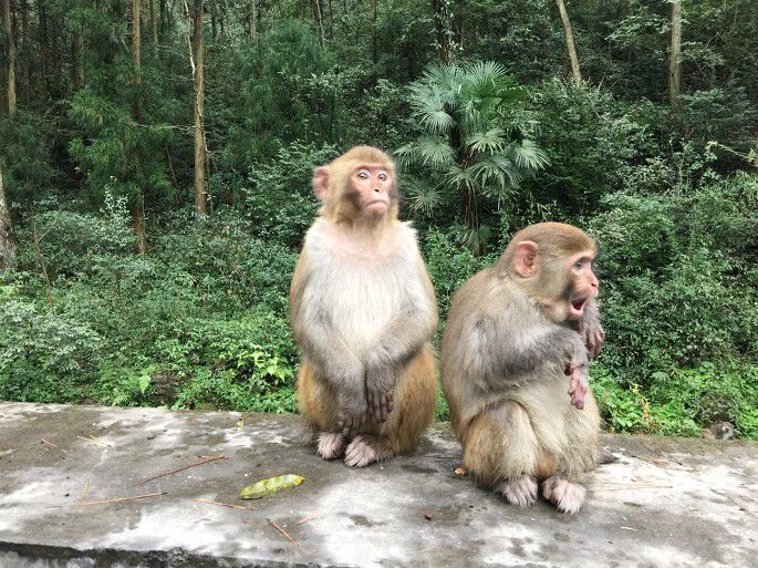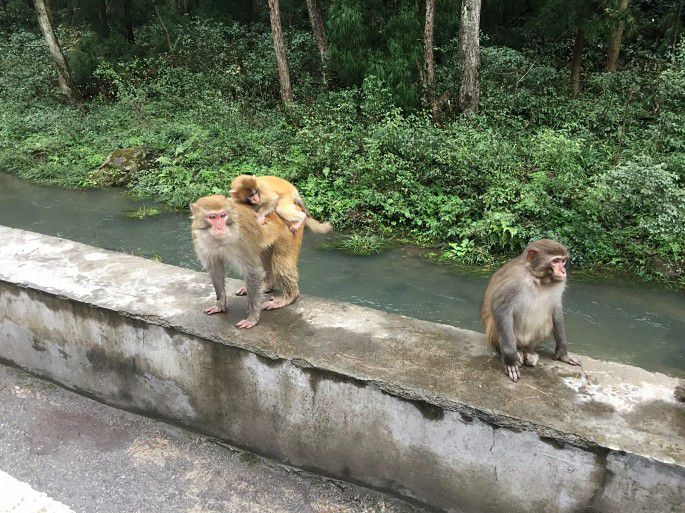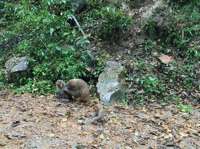 从森林公园往金靴溪游玩,一路会看到很多可爱的猴子猴孙。它们性情姿态各异,有的当你给它们拍照时会配合地坐下来,很享受当个大明星;有的会龇牙咧嘴,吓唬你以表明它们的威严;有的只忙着帮孩子抓跳蚤,懒得理我们;有的只顾着找吃的。老孙我走了,下次再来~~