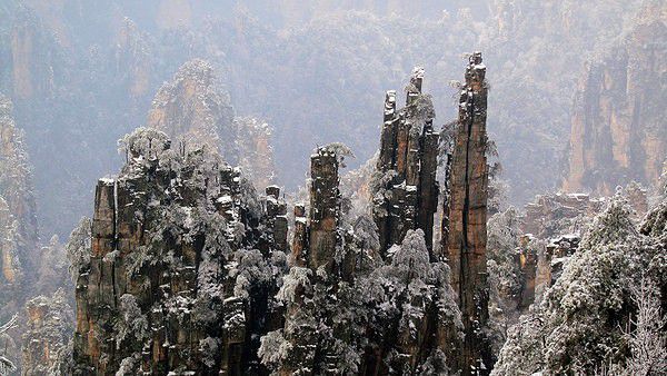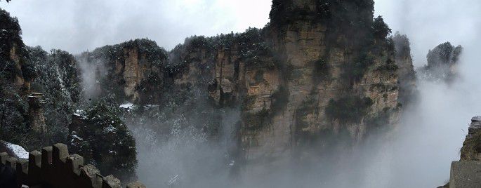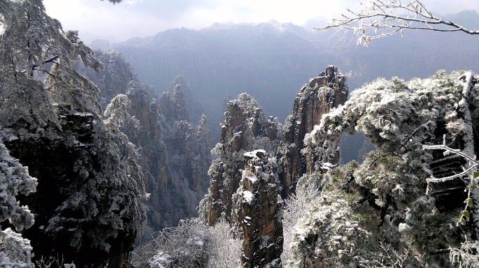 张家界森林公园、天门山——大自然鬼斧神工之作。短短三天,呈现给我们的是截然不同的几种感觉。如同天然的水彩画,令人心醉。因为这一场突如其来的大雪,反而让我们在淡季见到了最美的张家界。