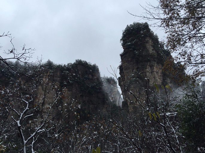 “你在南方的艳阳里四季如春,我在寒冷的张家界大雪纷飞。”有幸买了到张家界的火车票就能感受到哈尔滨的雪景。这是张家界2015年冬季的第一场雪,虽然环保车停开,加上雾雪天,原计划的天子山去不了,但可以欣赏到雪天的张家界,何尝不是一件乐事。旅程就是这样,有得有失有惊喜,这样的旅程才令人难忘,生活也是如此!