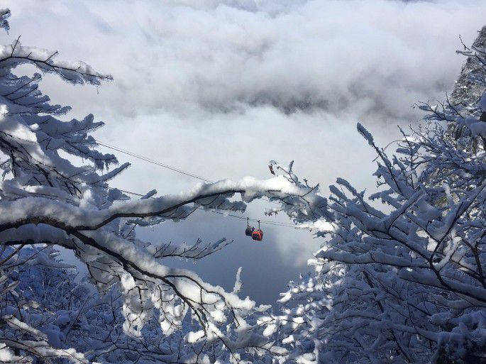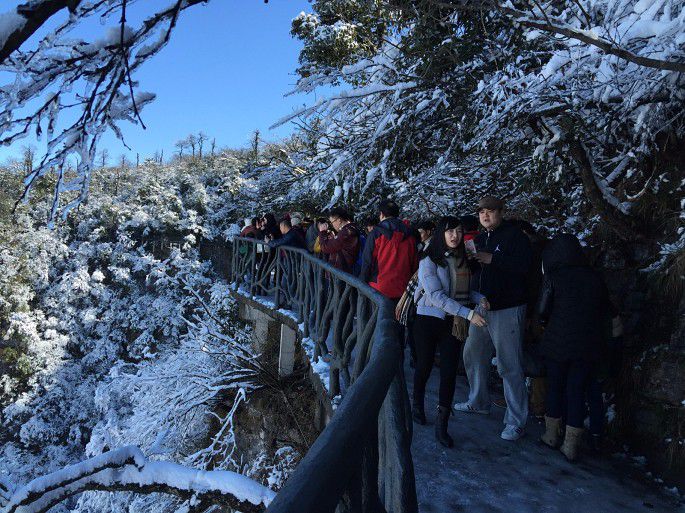 很多人说这个景点游玩只需要5个小时左右, 但建议大家还是提早到索道,我们原本想着是淡季,会很顺利地上索道,谁知那天是星期天加上天气晴朗,我们9点半到那里,足足排了两个小时才坐上索道,听小文说旺季的时候有些人是凌晨3点排队,花了10个小时才坐上索道。从索道返回时遇到一个当地的摄影爱好者,他说早上8多就坐上索道了,因为雪后的早晨是最美的,那时雪还没融化,走路也不容易滑倒。
