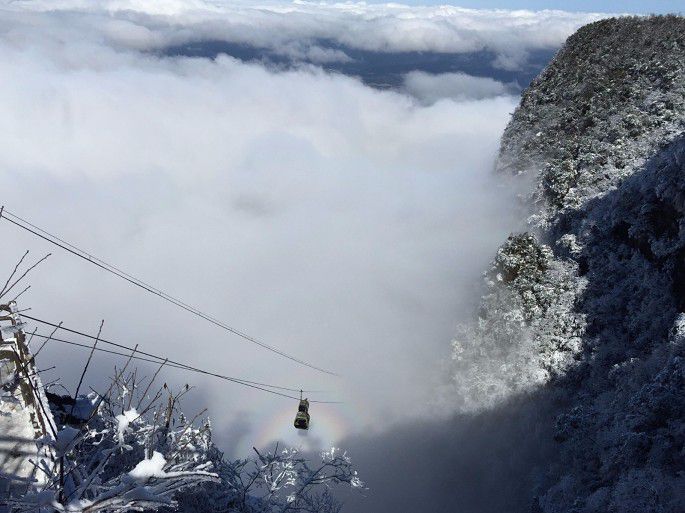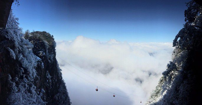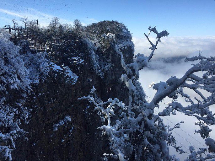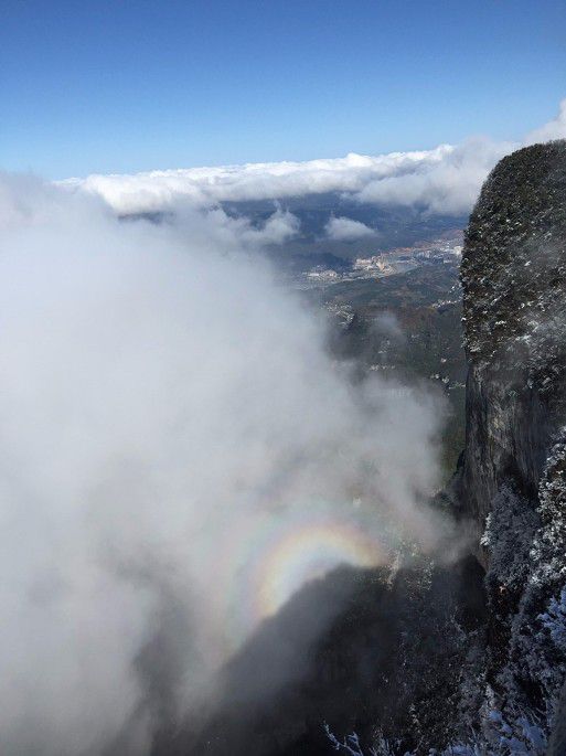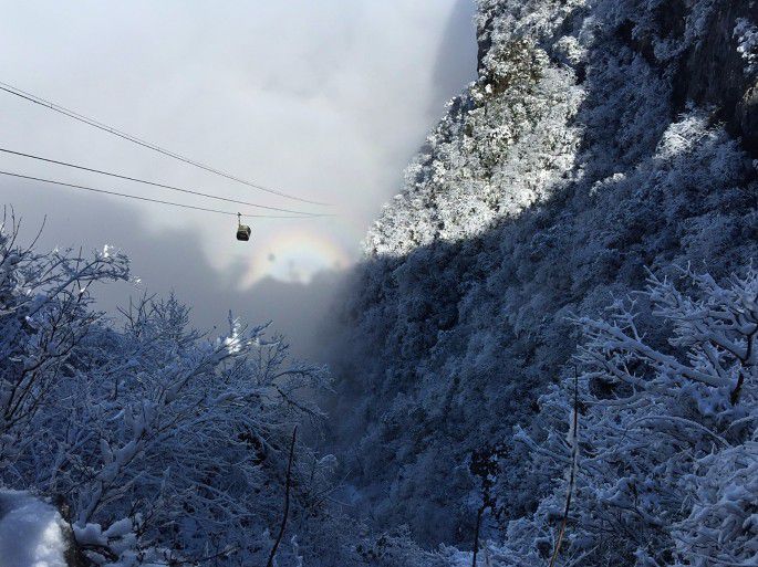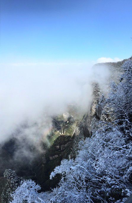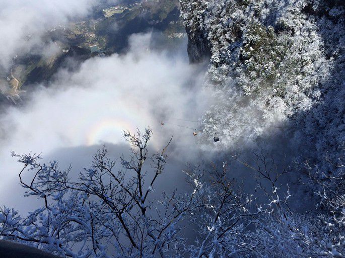 雪后的天门山是绝美的仙境,无法用言语表达的惊叹和震撼。大排长龙的上山队伍、最有名的玻璃栈道因积雪而关闭,一度使我们沮丧,但蓝天、云海、彩虹、冰挂、雾淞一一完美地呈现在我们眼前时,真的觉得叫我们排上10个小时也是值的,美哭了~~