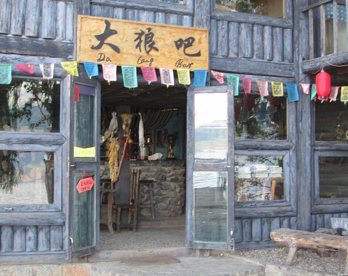 暮色苍茫中,我们沿湖畔的村街而行,尽是木楞房改成的酒吧、旅馆。我们走进老人“大狼吧”,男主人是个体格健壮、英俊潇洒的摩梭青年。女主人竟是《我嫁摩梭人》的作者吴海伦女士。吴女士曾是都市女郎。他原籍昆明,生在成都,毕业于北京科技大学,先后在北京、广州等地工作。1998年,为躲避一些烦心人事,来到了泸沽湖,找到了自己的精神家园,也找到了自己一生的伴侣。原本躁动的心,变得比泸沽湖水还要平静。